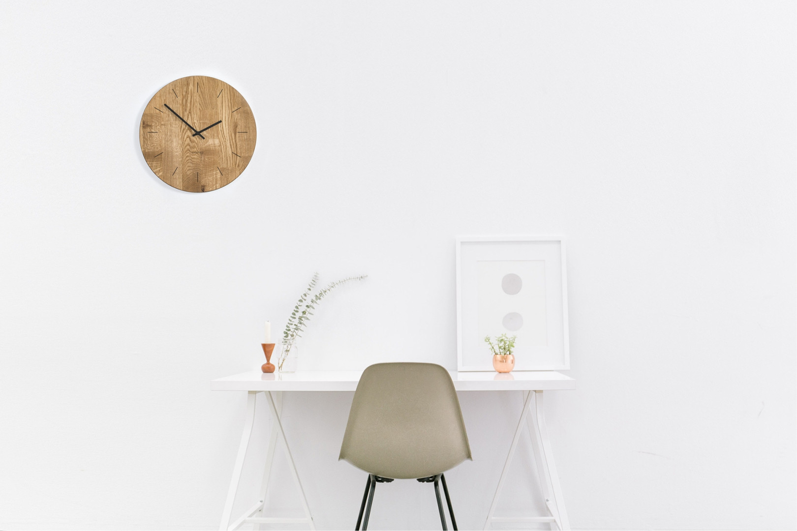 Nástěnné hodiny Pure M jsou vyrobeny z dubového dřeva.