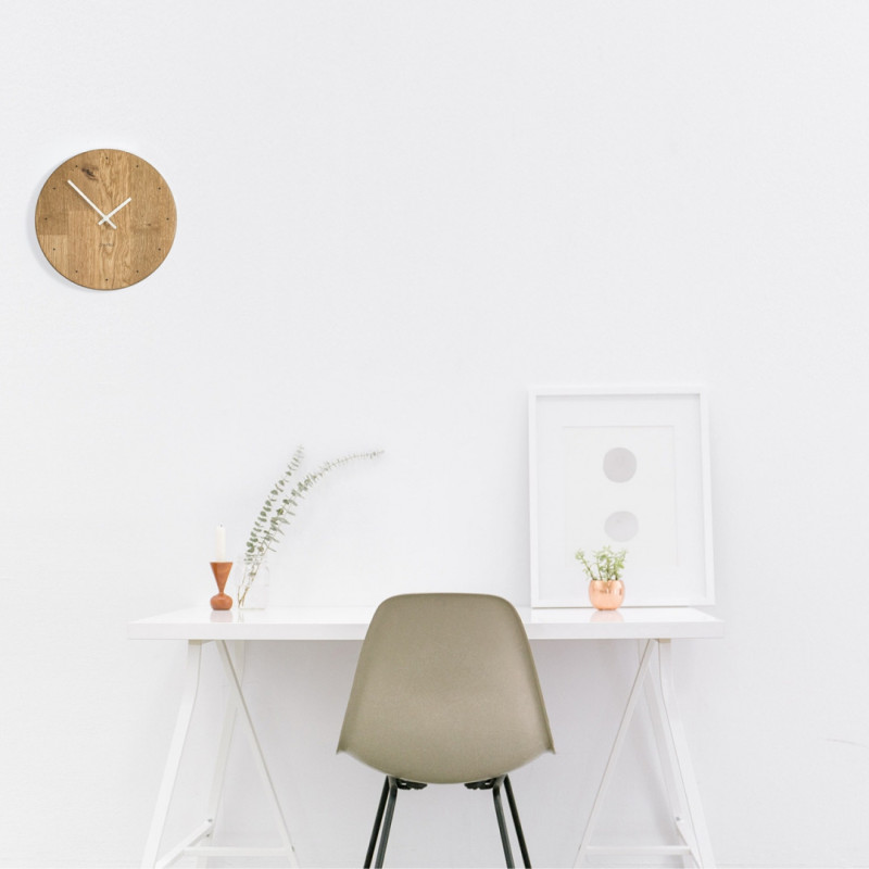 Nástěnné hodiny Pure S jsou vyrobeny z dubového dřeva.