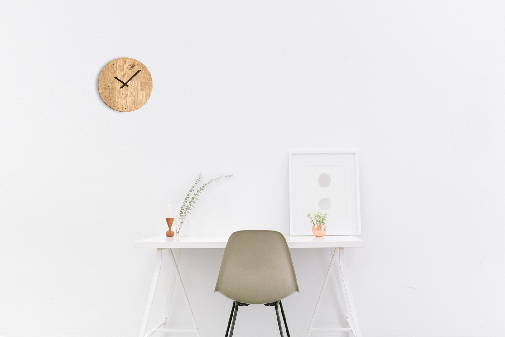 Nástěnné hodiny Pure S jsou vyrobeny z dubového dřeva.