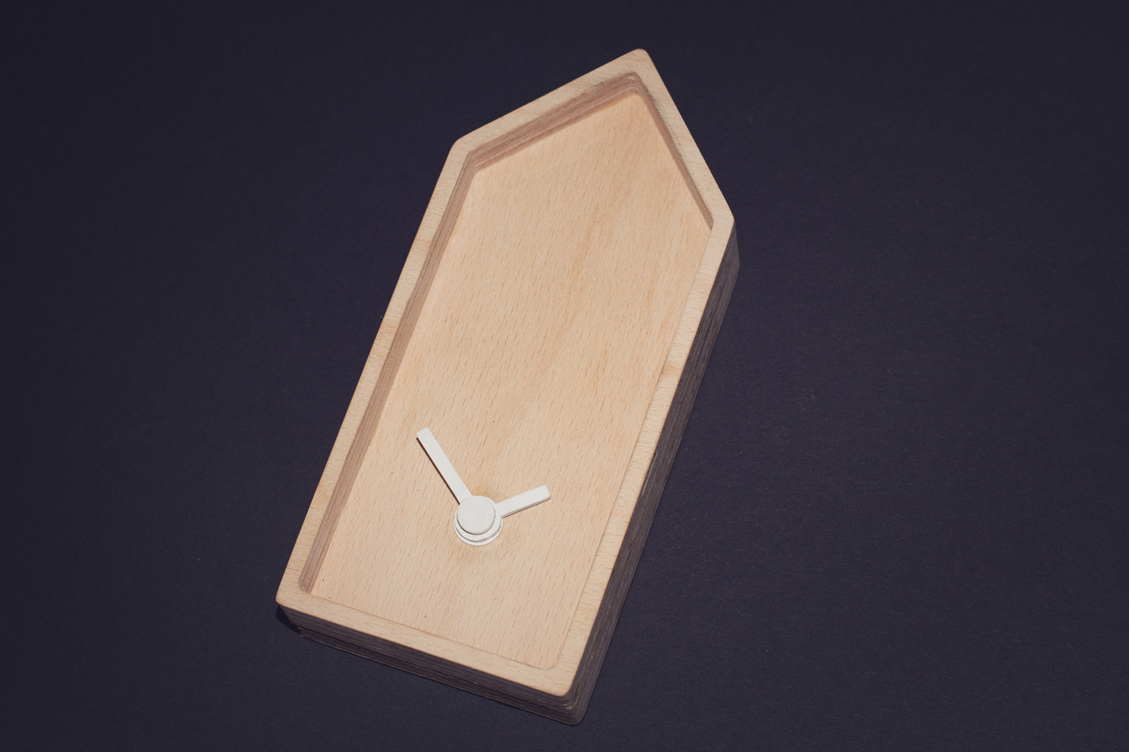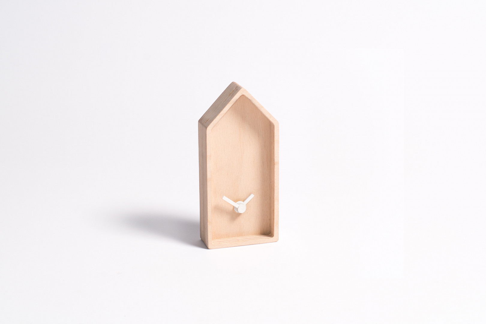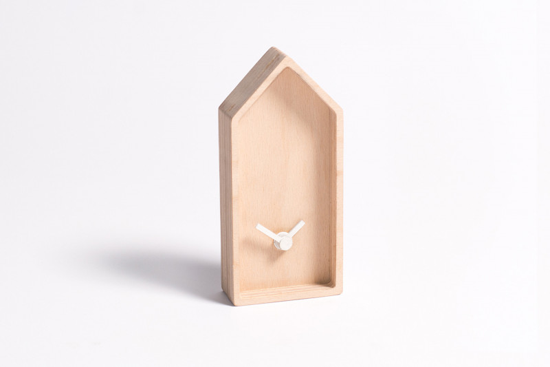 Stolní hodiny Roofie M jsou vyrobeny z bukového dřeva.