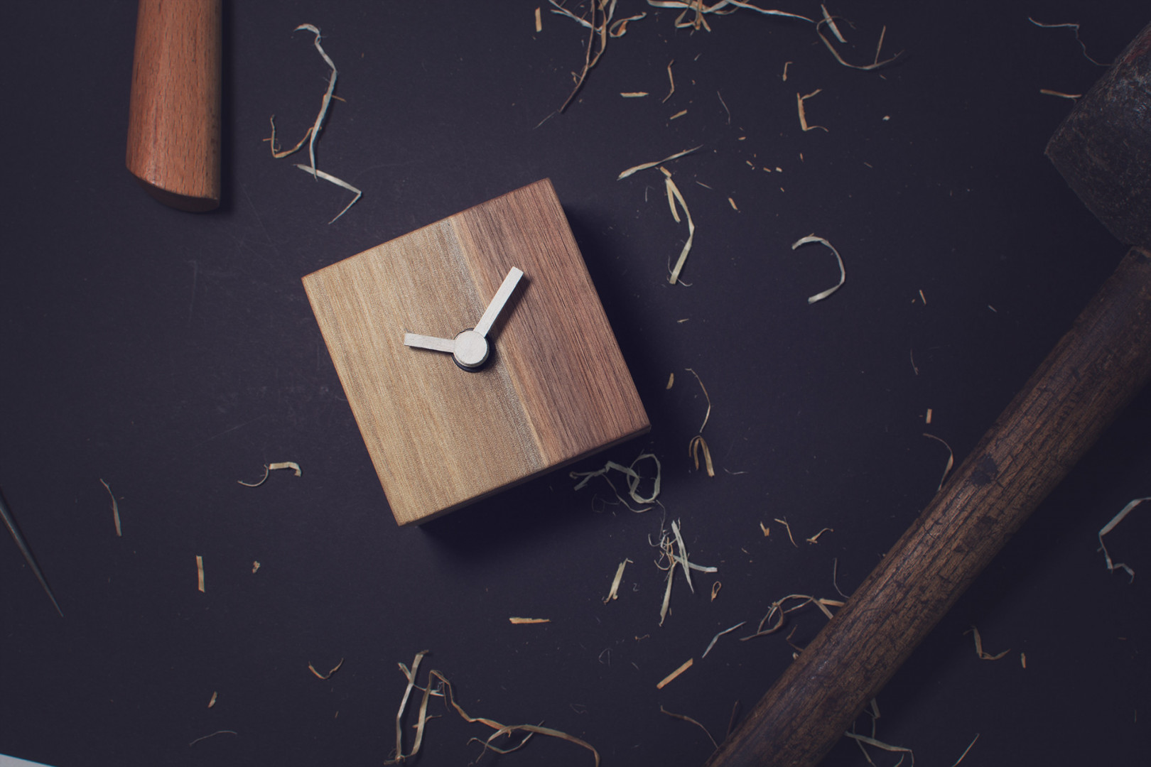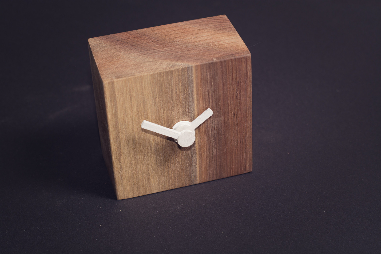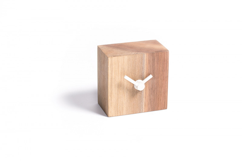 Stolní hodiny Simple block S jsou vyrobeny z ořechového dřeva.