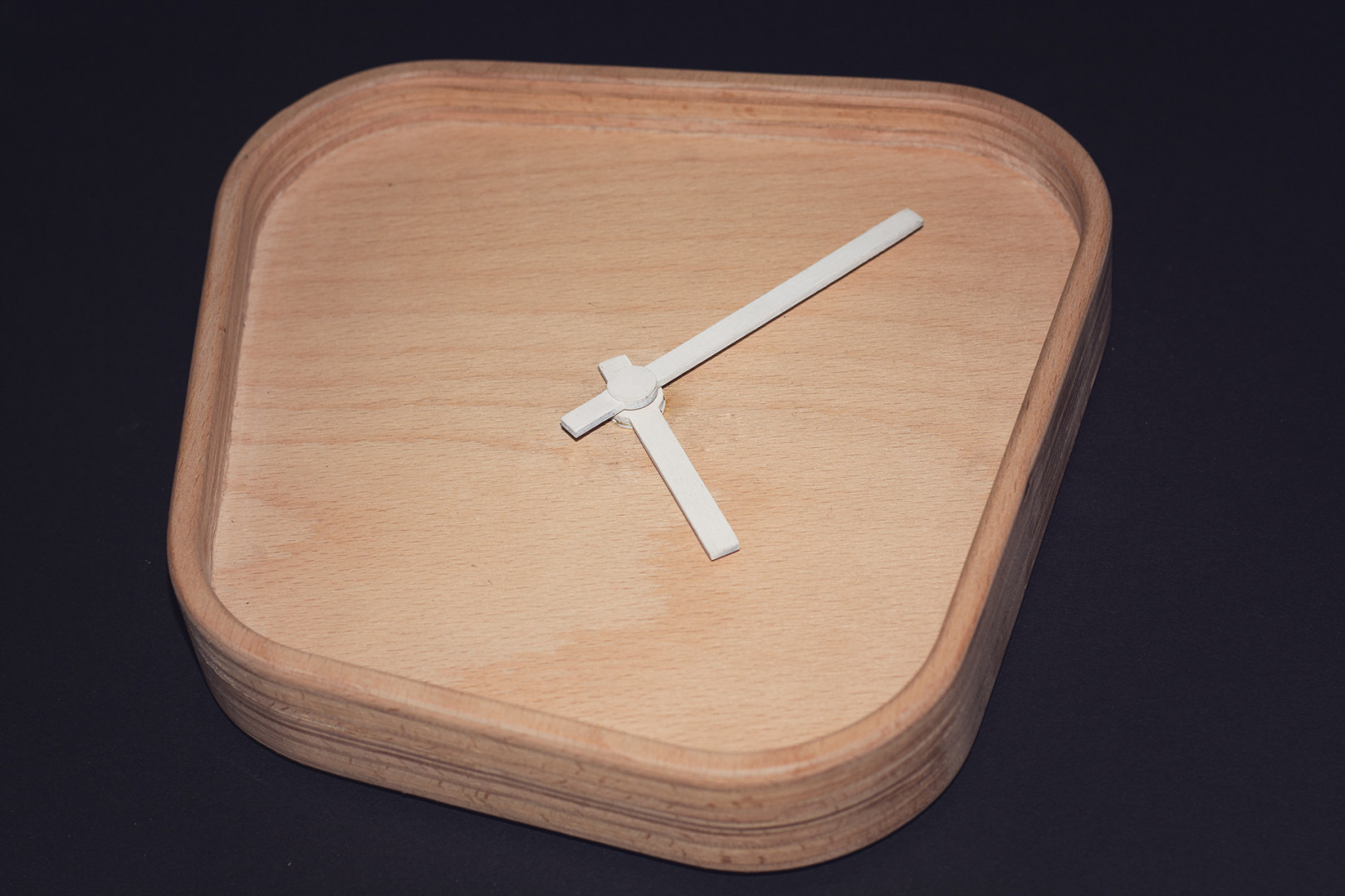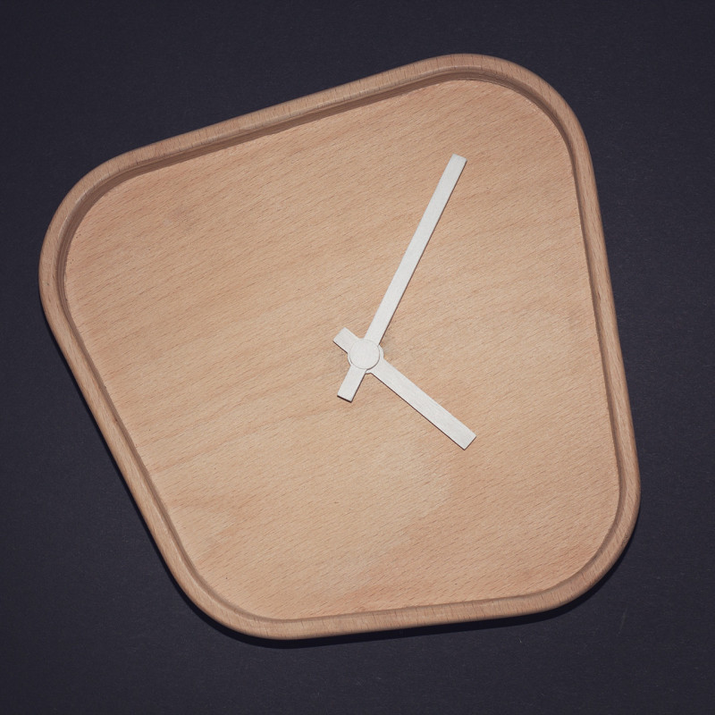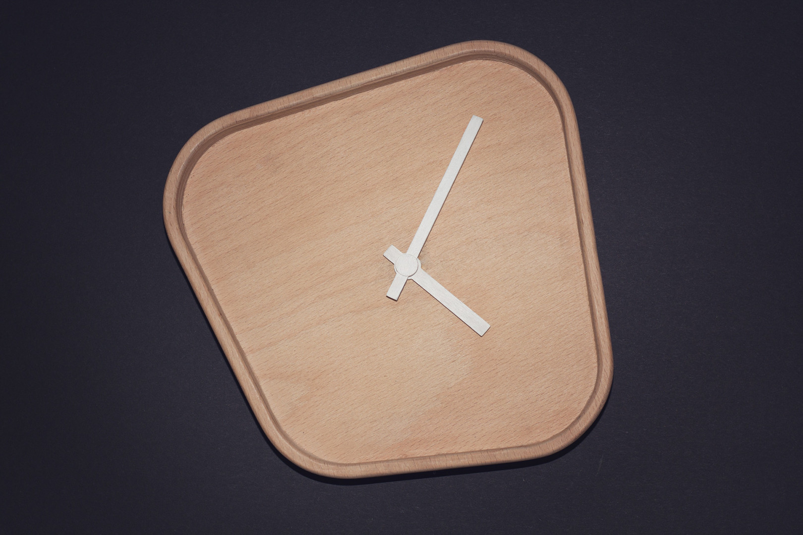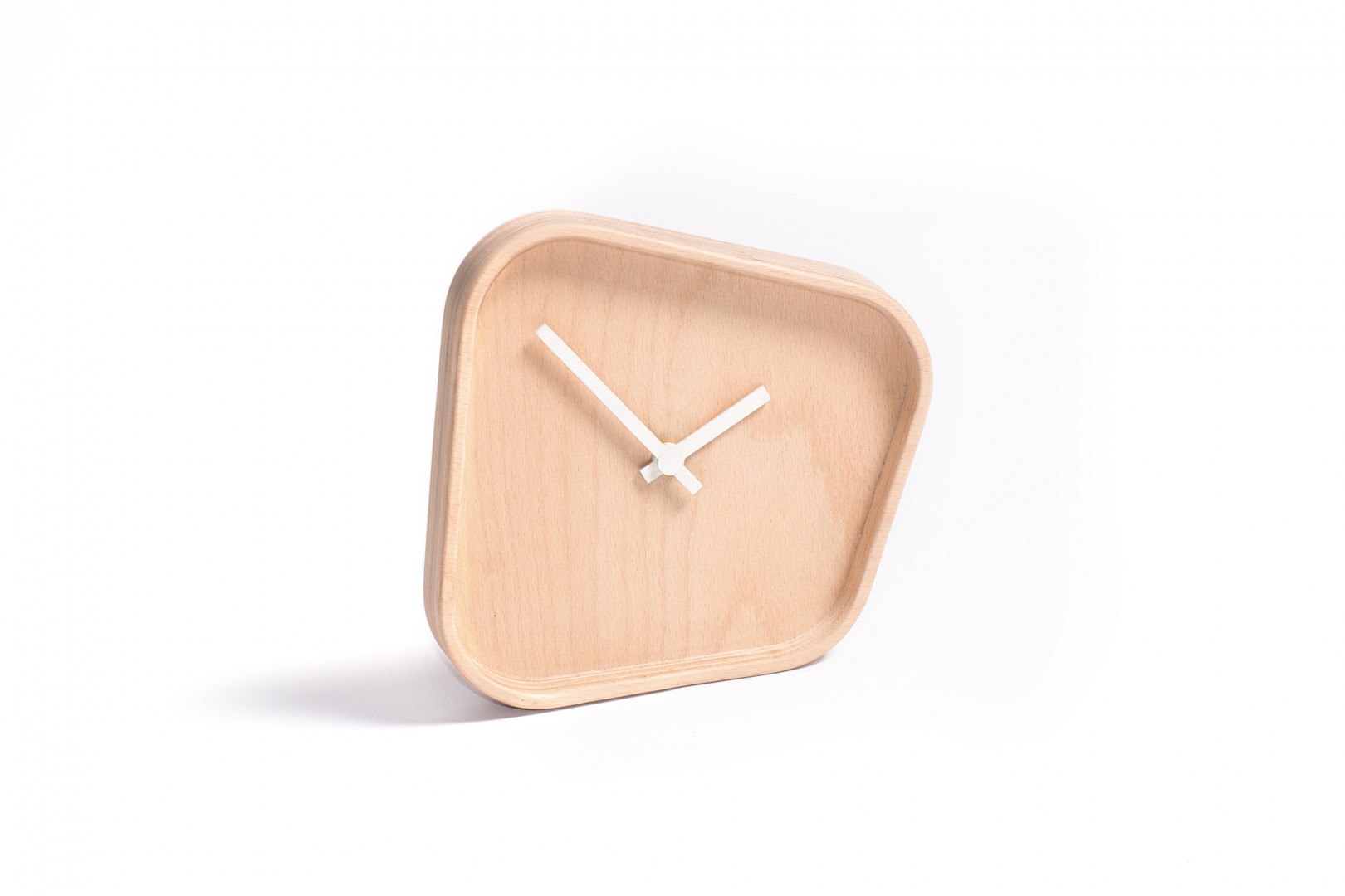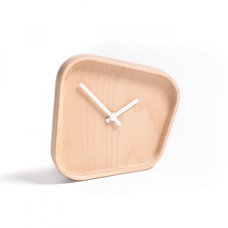 Stolní hodiny Uneven M jsou vyrobeny z bukového dřeva.