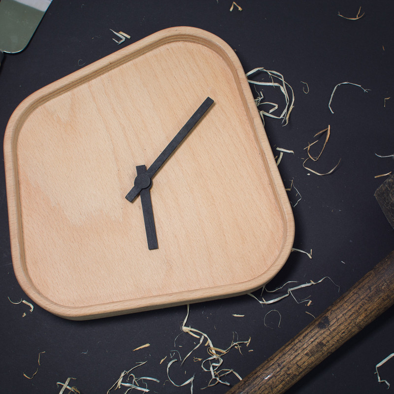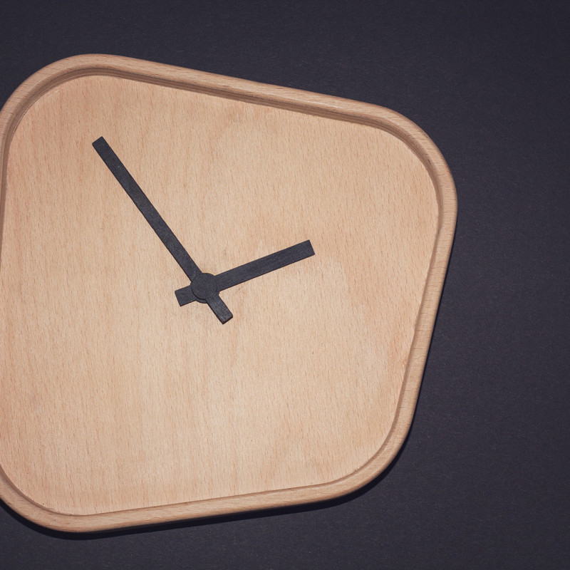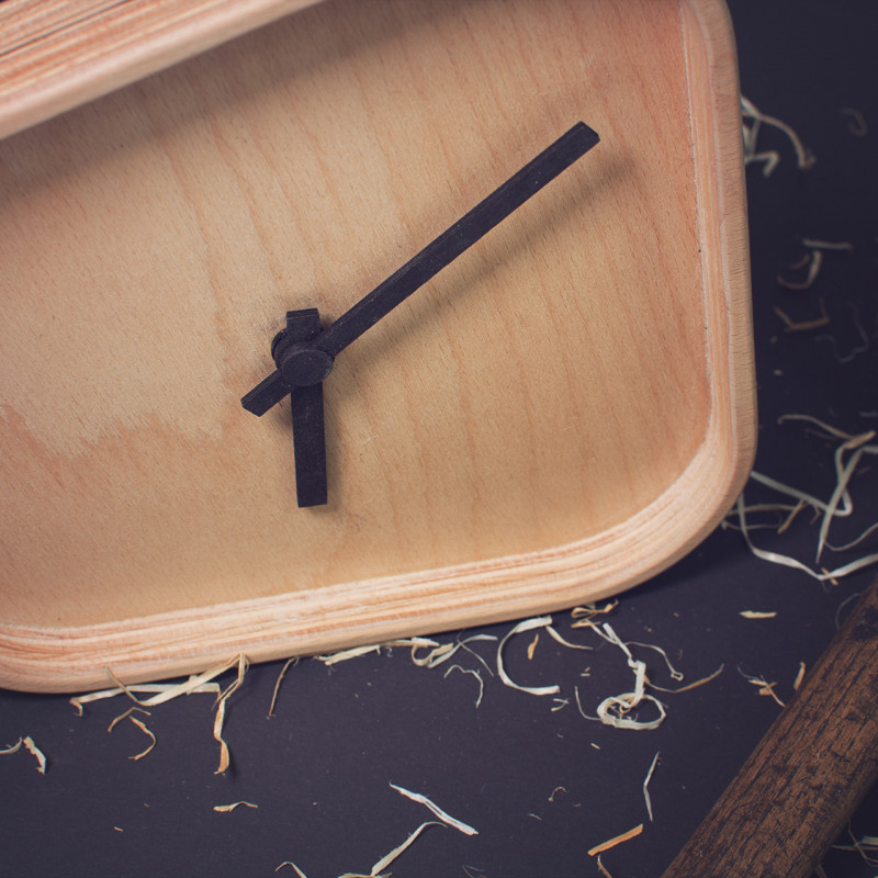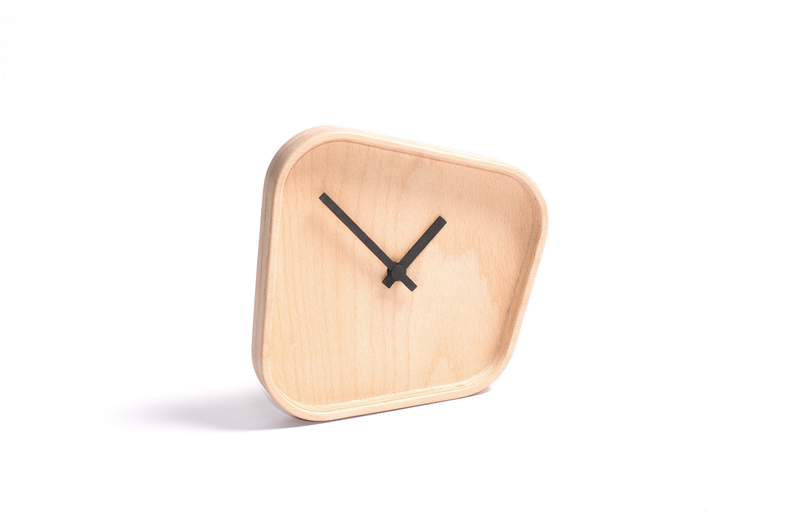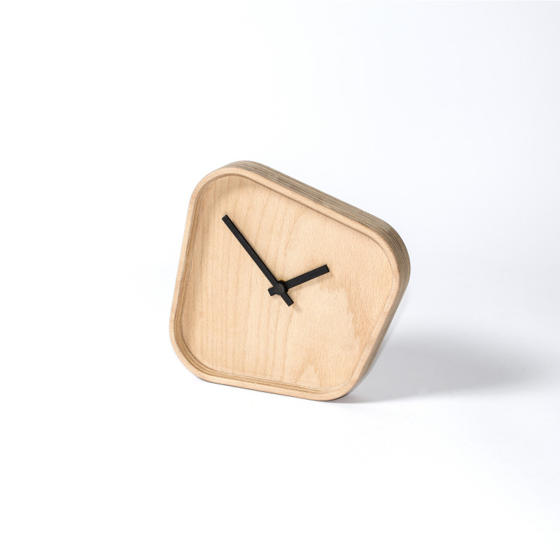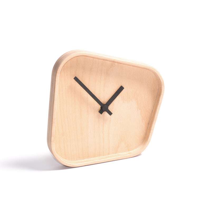 Stolní hodiny Uneven M jsou vyrobeny z bukového dřeva.