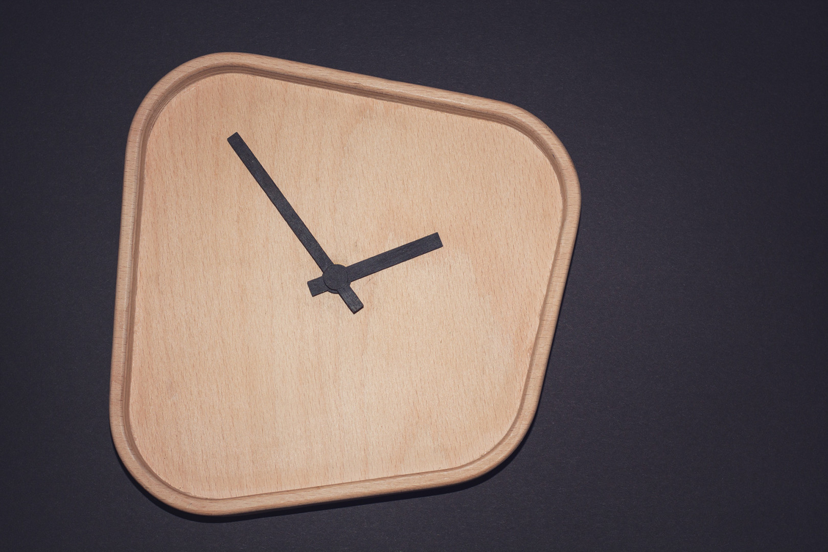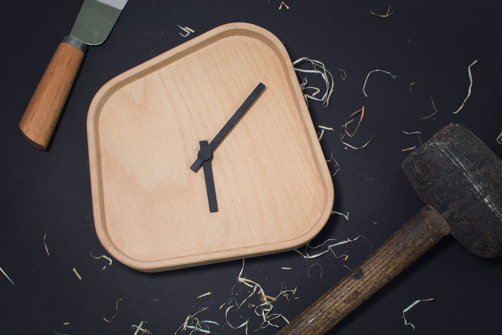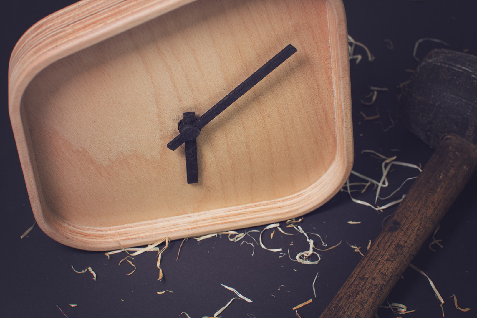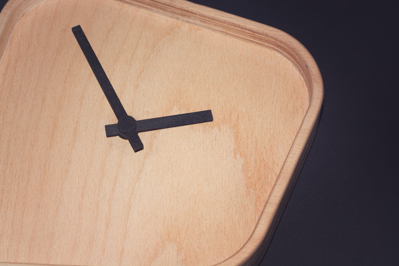 Stolní hodiny Uneven M jsou vyrobeny z bukového dřeva.